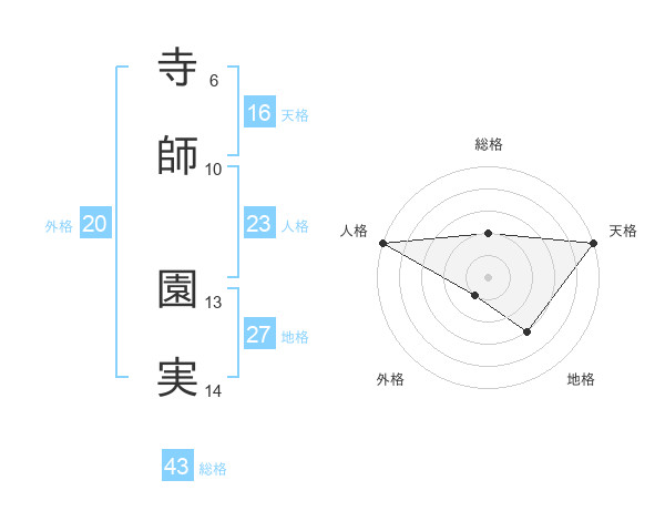 寺師 園実さんの総格は43画の2点!