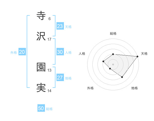 寺沢 園実さんを姓名の画数から五運を鑑定
