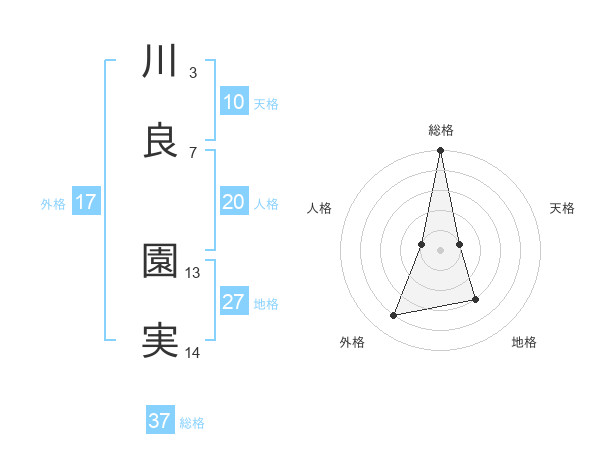 川良 園実さんの総格は37画の5点!