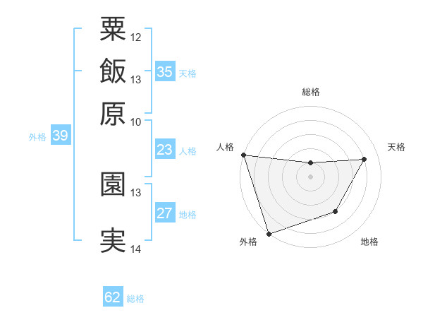 粟飯原 園実さんを姓名の画数から五運を鑑定