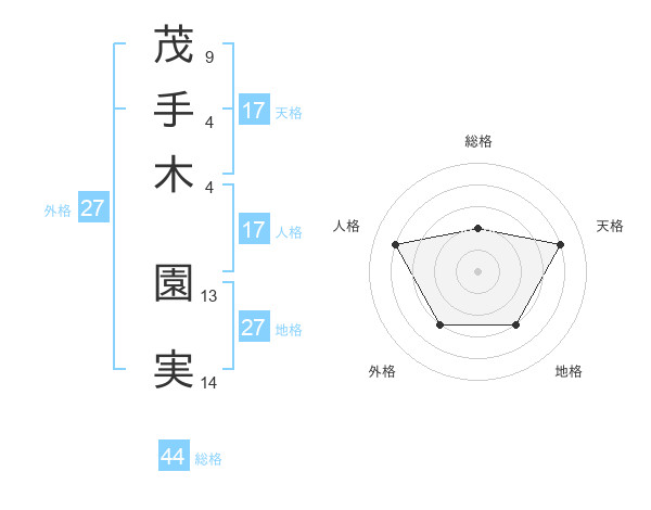 茂手木 園実さんの天格は17画の4点!