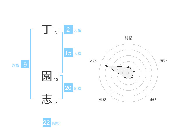 丁 園志さんの総格は22画の1点!