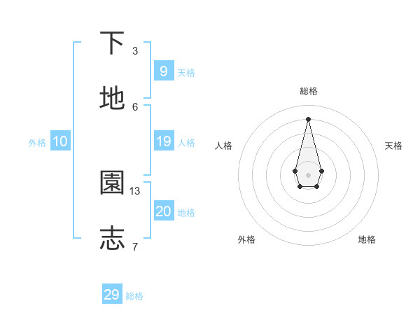 下地 園志さんの総格は29画の4点!