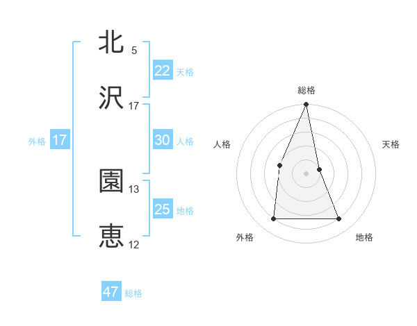 北沢 園恵さんの総格は47画の5点!