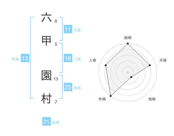 六甲 園村さんの総格は31画の5点!