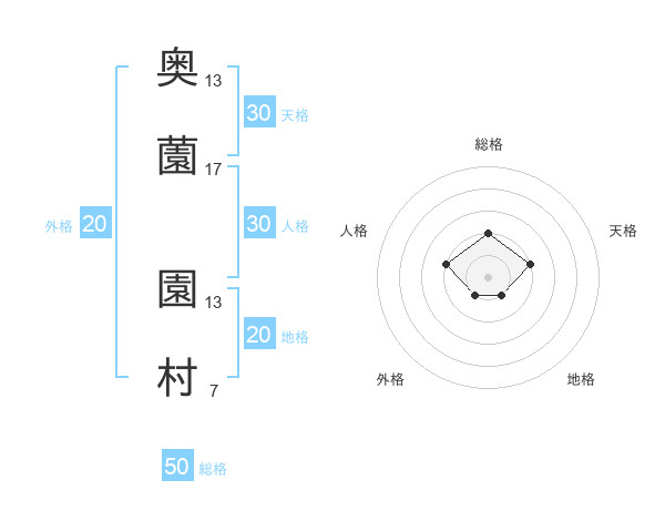 奥薗 園村さんを姓名の画数から五運を鑑定