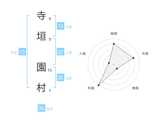 寺垣 園村さんを姓名の画数から五運を鑑定