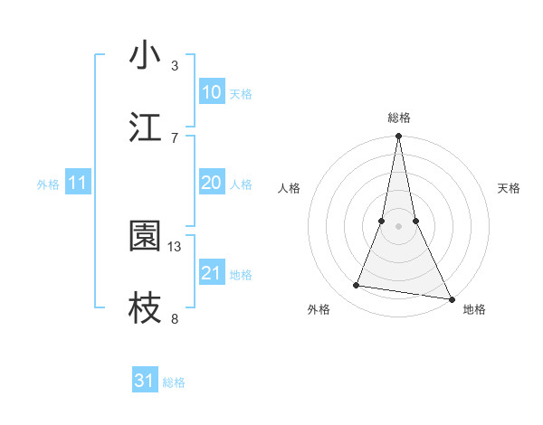 小江 園枝さんの総格は31画の5点!