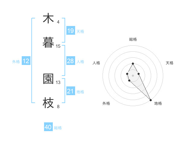 木暮 園枝さんの天格は19画の1点!
