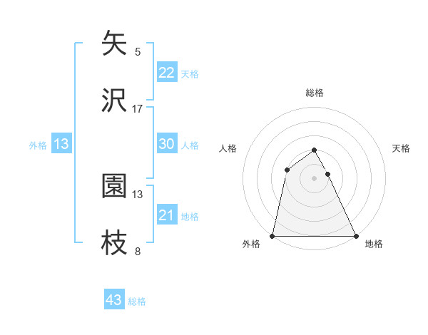 矢沢 園枝さんを姓名の画数から五運を鑑定