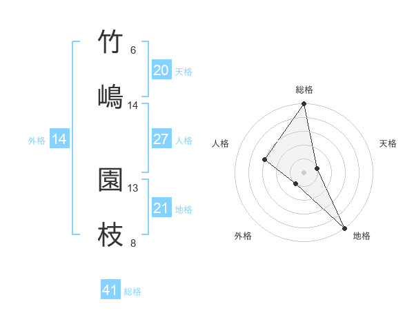 竹嶋 園枝さんを姓名の画数から五運を鑑定