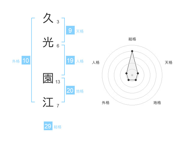 久光 園江さんの総格は29画の4点!