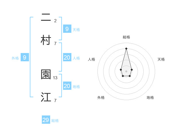 二村 園江さんの総格は29画の4点!