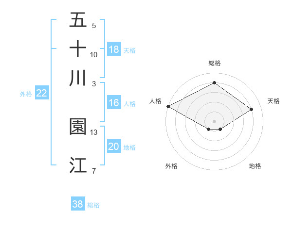 五十川 園江さんの総格は38画の4点!