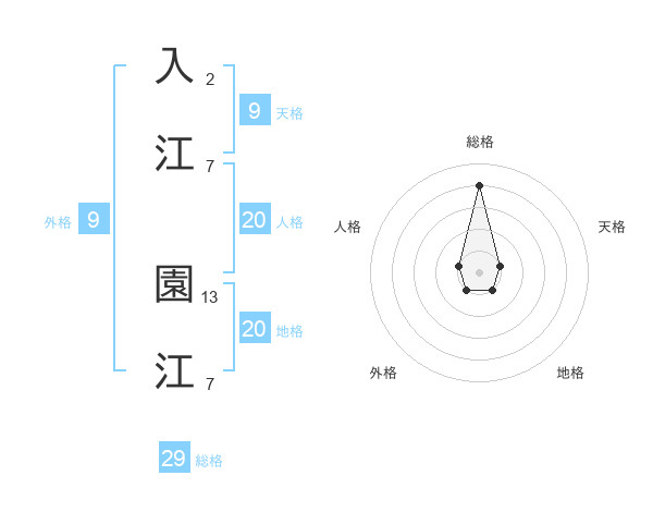 入江 園江さんの総格は29画の4点!