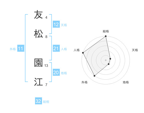 友松 園江さんの総格は32画の5点!