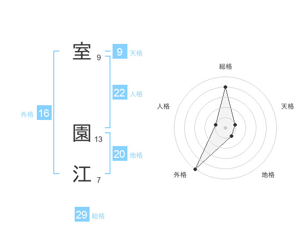 室 園江さんの総格は29画の4点!
