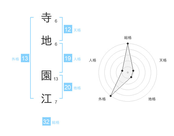 寺地 園江さんの総格は32画の5点!
