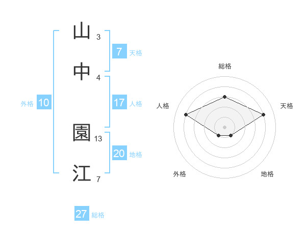 山中 園江さんの総格は27画の3点!