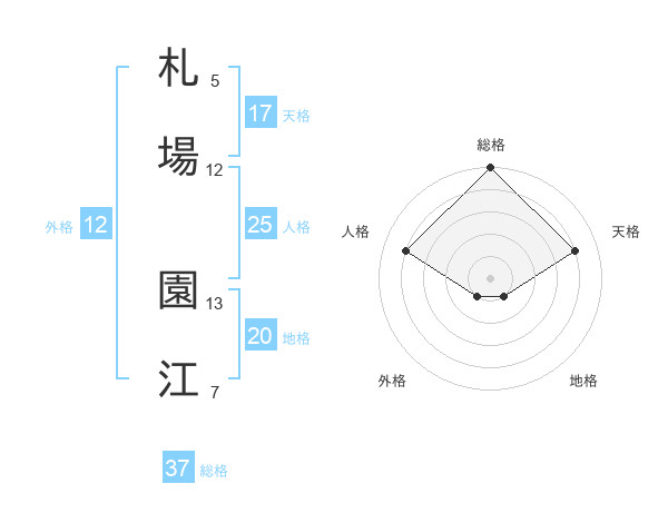 札場 園江さんの総格は37画の5点!