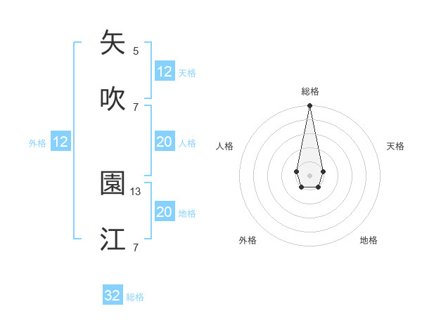 矢吹 園江さんの総格は32画の5点!