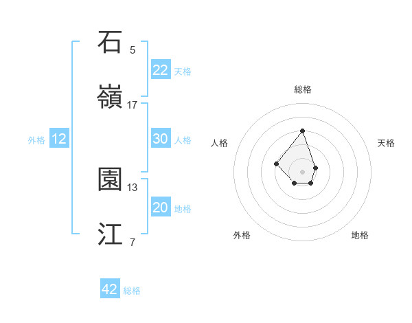 石嶺 園江さんを姓名の画数から五運を鑑定
