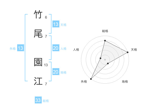 竹尾 園江さんの総格は33画の4点!