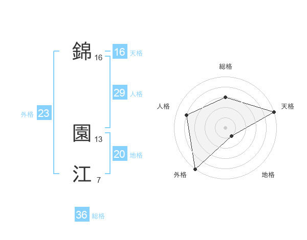 錦 園江さんの外格は23画の5点!