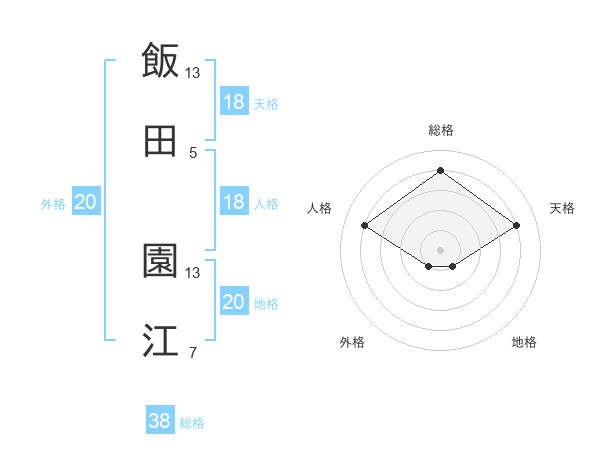 飯田 園江さんの総格は38画の4点!