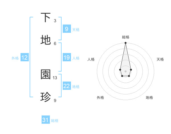 下地 園珍さんの総格は31画の5点!