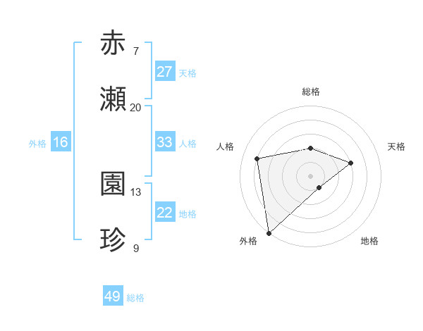 赤瀬 園珍さんの総格は49画の2点!
