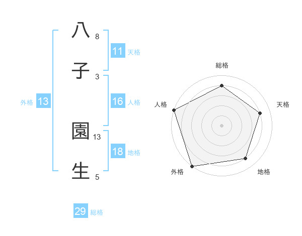 八子 園生さんの外格は13画の5点!