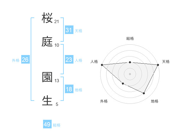 桜庭 園生さんの総格は49画の2点!