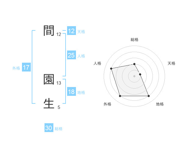 間 園生さんの外格は17画の4点!