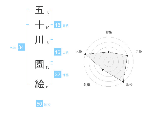 五十川 園絵さんの総格は50画の2点!