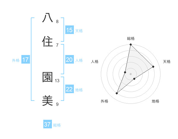 八住 園美さんの総格は37画の5点!
