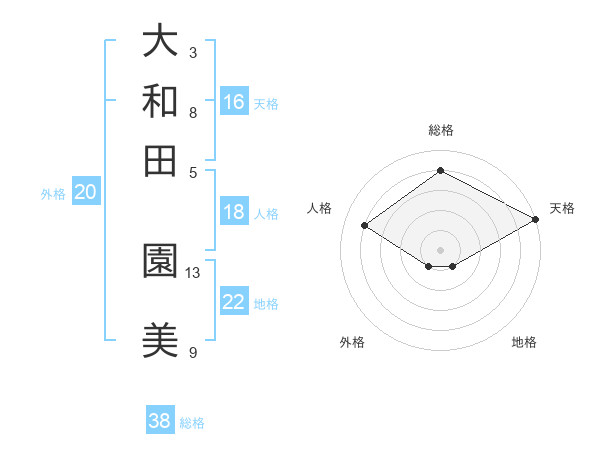 大和田 園美さんの総格は38画の4点!