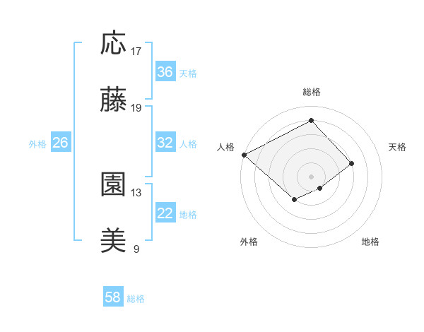 応藤 園美さんを姓名の画数から五運を鑑定
