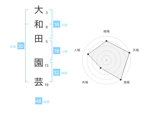 大和田 園芸さんを姓名の画数から五運を鑑定
