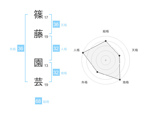 篠藤 園芸さんを姓名の画数から五運を鑑定