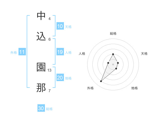 中込 園那さんの総格は30画の2点!