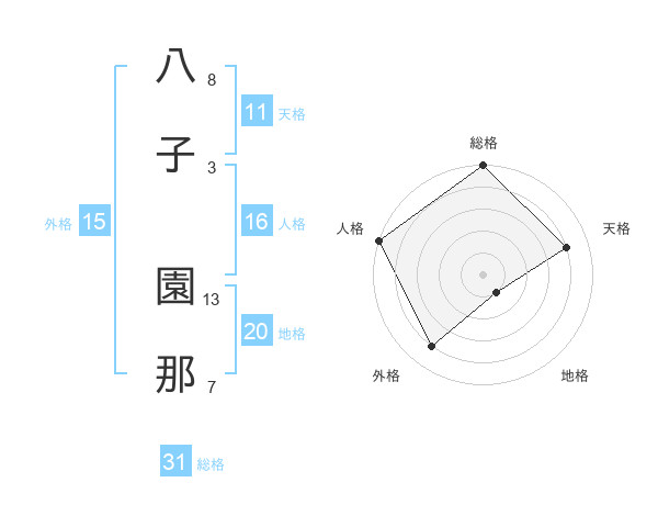 八子 園那さんの地格は20画の1点!