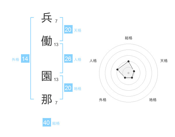 兵働 園那さんの総格は40画の2点!