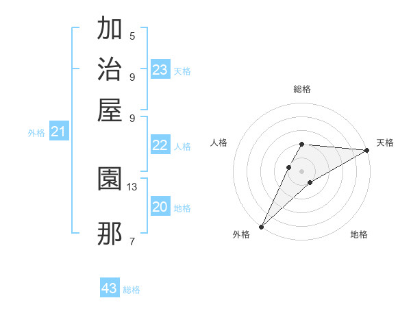 加治屋 園那さんの外格は21画の5点!