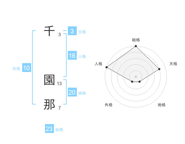 千 園那さんの総格は23画の5点!