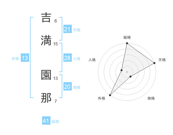 吉満 園那さんの天格は21画の5点!