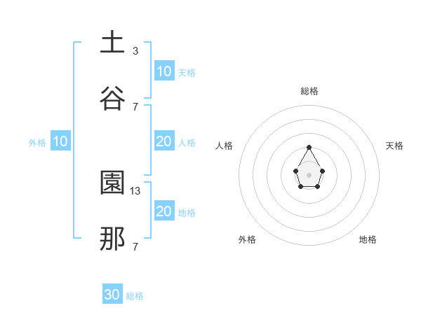 土谷 園那さんを姓名の画数から五運を鑑定