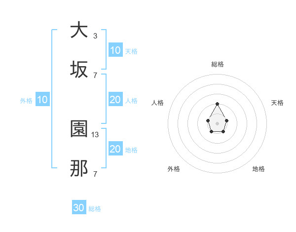 大坂 園那さんの総格は30画の2点!