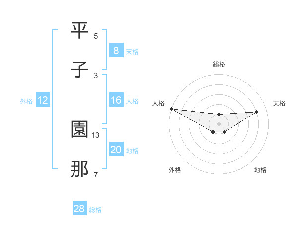 平子 園那さんの天格は8画の4点!