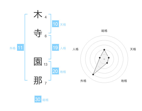 木寺 園那さんを姓名の画数から五運を鑑定